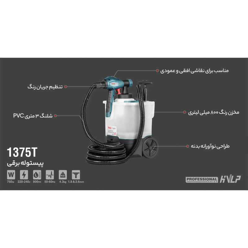 هر چند سال یکبار لازم است تا خانهی خود را نقاشی کنید. دلیل این موضوع کثیف شدن یا ترک خوردن دیوارها، سقف و مواردی از این دست است. شاید به نظر شما، رنگ کردن خانه کار چندان جذابی نباشد. این تصور به دلیل بوی نامطبوع رنگ و انرژی زیادی است که باید صرف نقاشی محیط خانه کنید. از طرفی هزینهی بالایی که برای نقاشی به پیمانکار یا نقاش بپردازید هم چندان قابل قبول نیست. این مورد باعث میشود که بخواهید خانهی خود را شخصا نقاشی کنید. پس برای این کار باید وسایل مورد نیاز را تهیه کنید. به کارگیری قلمو، غلطک و استفاده از وسایل دستی، هم انرژی زیادی را از شما میگیرد و هم ممکن است که نتوانید کارتان را در سطح قابل قبولی انجام دهید. یکی از راه حلهای موجود استفاده از پیستولههای برقی است که هم کارتان را راحتتر میکند و هم کیفیت کار را بالا میبرد. پیستولهی برقی مدل 1375T که شرکت رونیکس آن را تولید کرده، از جمله محصولاتی است که کمک بسیار زیادی به سرعت عمل شما در نقاشی و رنگآمیزی میکند, این پیستوله مجهز به موتور پر قدرت 750 وات تحت سیستم رنگ پاشی HVLP مطابق با استاندارد CE اروپا می باشد که قابلیت پاشش رنگ به صورت افقی، عمودی و چرخشی را دارد و مجهز به دو عدد نازل با قطر پاشش 1.8 و 2.6 میلیمتری شده است. مخزن متصل به این پیستوله گنجایش 800 سیسی رنگ را دارد. ویژگی اصلی این پیستوله مخزن قابل حمل و شلنگ 3 متری دارای قابلیت جمع شدن داخل مخزن می باشد.