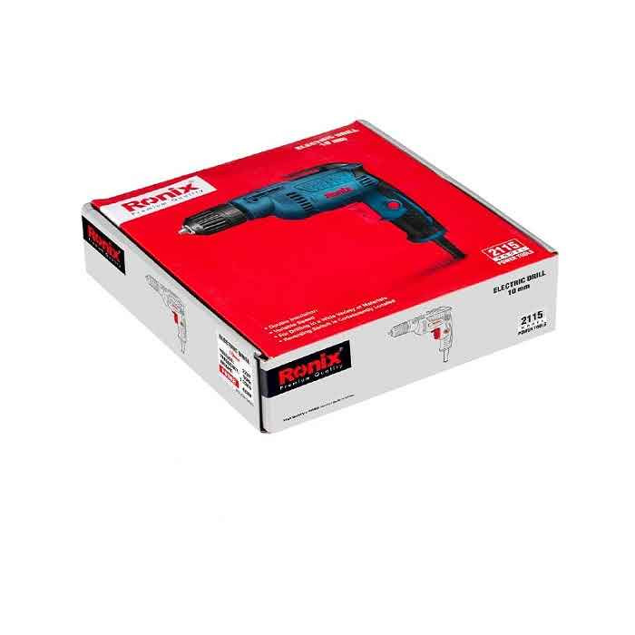 دریل برقی 2115 رونیکس، با موتور پرقدرت 420 وات کار میکند و مجهز به آرمیچر و بالشتکهای صنعتی با کیفیت ساخت فوقالعاده بالا است. در نتیجه، مداومت کاری دستگاه بیشتر شده و قدرت سوراخکاری آن دوچندان میشود. دریل برقی 2115 رونیکس، مجهز به سه نظام مستحکم، 10 میلیمتری و اتوماتیک است؛ برای تعویض مته نیازی به آچار ندارد و همین موضوع تاثیر شگرفی بر سرعت کار با آن میگذارد. این ابزار برقی کاربردی، با برخورداری از اهرم چپگرد/راستگرد میتواند در کنار عملیات دریلکاری به عنوان پیچگوشتی برقی نیز کار کند. کلید اصلی این دریل، ضد غبار و دیمردار بوده و سرعت چرخش مته را تنظیم و کنترل میکند. افزونبراین، قفلکن کلید، دریل را بعد از روشنشدن در حالت روشن نگه میدارد تا بتوانید آن را در مدتزمانی طولانی و بدون نیاز به فشردن دائمی کلید اصلی، روشن نگه دارید