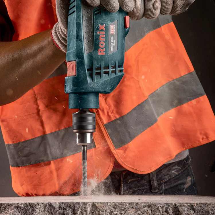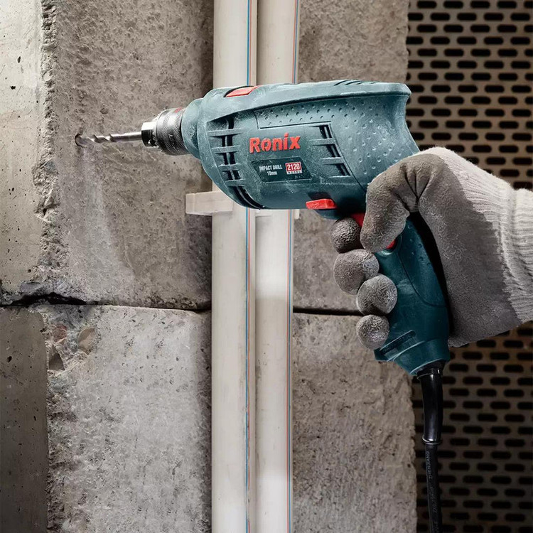 معرفی دریل چکشی رونیکس مدل 2120 دریل چکشی رونیکس مدل 2120 دارای سه نظام 10 میلیمتری تمام فلزی و آچار خور می باشد که دارای قطر سوراخکاری در چوب تا 30 میلیمتر ، قطر سوراخکاری در فولاد 10 میلیمتر ، و قطر سوراخکاری درسنگ و بتن تا 10 میلیمتر است . ابزار برقی رونیکس دارای توانی معادل 750 وات بوده و بدنه آن برای راحتی استفاده کاربر و جلوگیری از خستگی زود هنگام ، کاملا به صورت ارگونومیک طراحی شده و دارای دسته جانبی ضد لرزش نیز خواهد بود . این دریل چکشی دارای قابلیت تنظیم جهت گردش به صورت چپ گرد ، راست گرد نیز می باشد . رونیکس در طراحی و ساخت این ابزار برقی برای سهولت هر چه بیشتر در استفاده از این دستگاه ، کلید الکترونیک دیمرداری را بر روی شاستی اصلی دستگاه برای تنظیم سرعت گردش دریل تعبیه کرده است که به سادگی در هنگام کار بتوان عملیات تغییر چرخش (چپ گرد-راست گرد) و تغییر سرعت را بدون هیچ وقفه ای انجام داد . از دیگر ویژگی های خوب ابزار میتوان به سیستم جدید تعبیه آچار به صورت خشابی بر روی کابل برای سهولت استفاده و سیستم کروی اتصال کابل جهت جلوگیری از استهلاک حین کاربری و طول عمر هرچه بیشتر آن اشاره کرد . و سرعت در حال آزاد آن 0-2800 دور در دقیقه خواهد بود .