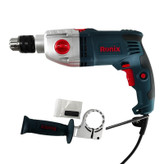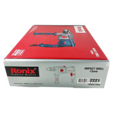 دریل 2221 رونیکس مجهز به موتور توانمند 1050 واتی متشکل از آرمیچر و بالشتکهای صنعتی باکیفیت، تولید شده توسط دستگاههای تمام اتوماتیک مطابق با استاندارد CE است. این موتور با توان بالای خود سرعتی بالغ بر 3200 دور در دقیقه تولید میکند که قابلیت نفوذ تا عمق 30 میلیمتر در چوب، 13 میلیمتر در فلز و 16 میلیمتر در بتن را فراهم میکند.علاوه بر این، موتور دریل 2221 گیربکسی دو سرعته است که برای کار روی سطوح مختلف میتوان سرعت دریل را روی حالت اول (صفر تا 1200 دور در دقیقه) یا دوم (صفر تا 3200 دور در دقیقه) تنظیم نمود. این محصول دارای مکانیزم ضربهای (چکشی) بوده و در حالت چکشی بالغ بر 42000 ضربه در دقیقه تولید میکند. این مکانیزم به دستگاه برای نفوذ به سطوح متراکم کمک میکند. پس از موتور، سه نظام مورد توجهترین بخش هر دریل است.