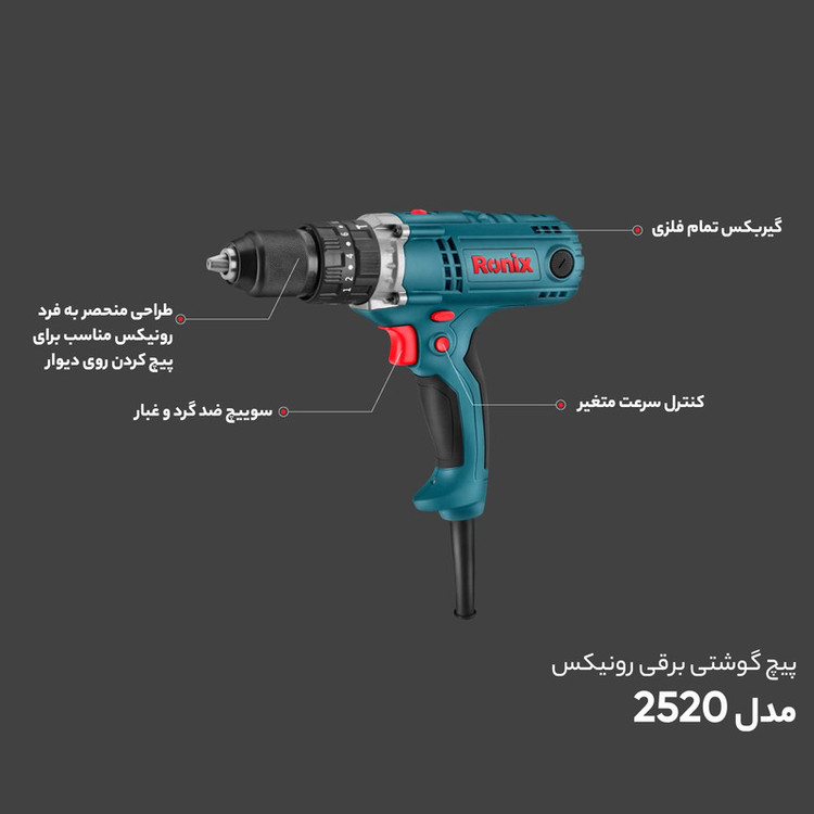 - موتور قدرتمند 450 واتی که گشتاورهای متفاوت برای بستن انواع پیچ ها را فراهم میکند- طراحی ارگونومی ، سبک و جمع و جور که بالاترین قدرت در سبک ترین وزن را باری خستگی هرچه کمتر کاربر فراهم میکند.- مقاوم و ضد لرزش مجهز به روکش لاستیکی نرم مقاوم در برابر سقوط احتمالی- دارای 2 سرعت برای انواع مختلفی از کاربری ها و دقت بالا- دارای قابلیت کنترل سرعت به منظور کاربر بر روی متریال های مختلف- مجهز به سوییچ ضد غبار- گیربکس فلزی برای بهبود عملکرد در عملیات های سنگین- مجهز شده با قابلیت سوراخکاری چکشی برای کار در انواع مصالح ساختمانی- دارای دسته جانبی فلزی برای کنترل بیشتر