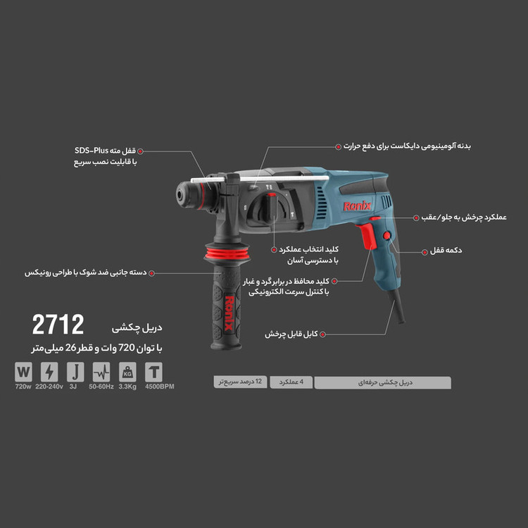 دریل بتن کن رونیکس مدل 2712