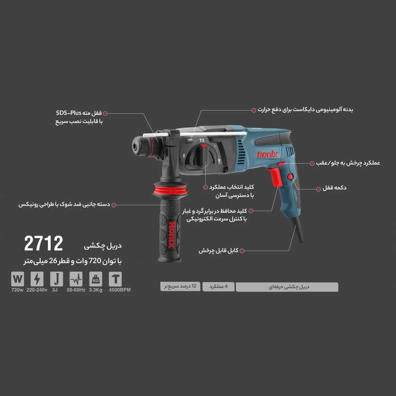 دریل بتن کن رونیکس مدل 2712