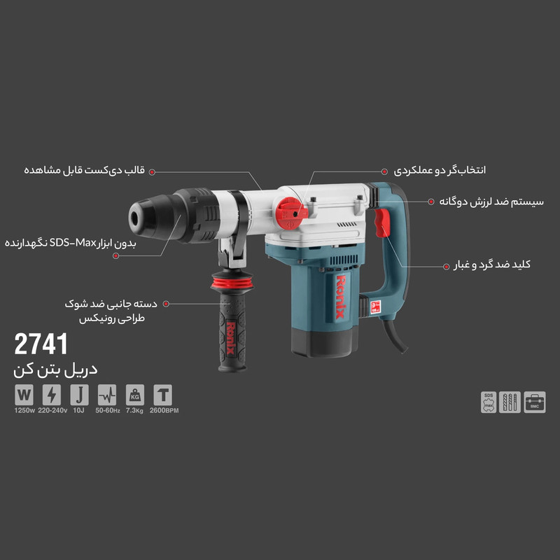 سیستم دقیق دوران قلم به منظور افزایش دقت برای انجام کار روی موقعیت مدنظر- سیستم تخریب سریع با قدرت و کیفیت بالا که این دستگاه را به عنوان رقیب نمونههای مشابه خارجی معرفی میکند.- دسته جانبی این دستگاه قدرت نگهداری بالایی را برای انجام کار در ساعتهای متوالی در اختیار کاربر قرار میدهد.- سیستم کلاچ ایمنی قابلیت این را دارد که اضافه بار را کنترل کند و از این طربق از قسمت موتور دستگاه محافظت کرده و ایمنی را تضمین کند.- قابلیت تنظیم و تثبیت سرعت توسط دیمر الکترونیکی به منظوراستفاده در کاربری های مختلف