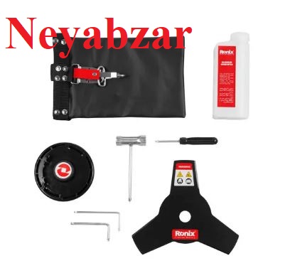 تیغ برش نخ نایلونی، تیغ برش دلتا، بطری ترکیب روغن و بنزین، کمربند حمل حین کاربری، محافظ، آچار آلن