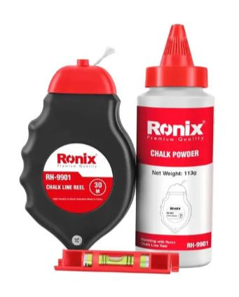 کیت ریسمان بنایی شامل ریسمان نخ 30 متری،بطری پودر گچ 113گرمی و تراز دستی کوچک