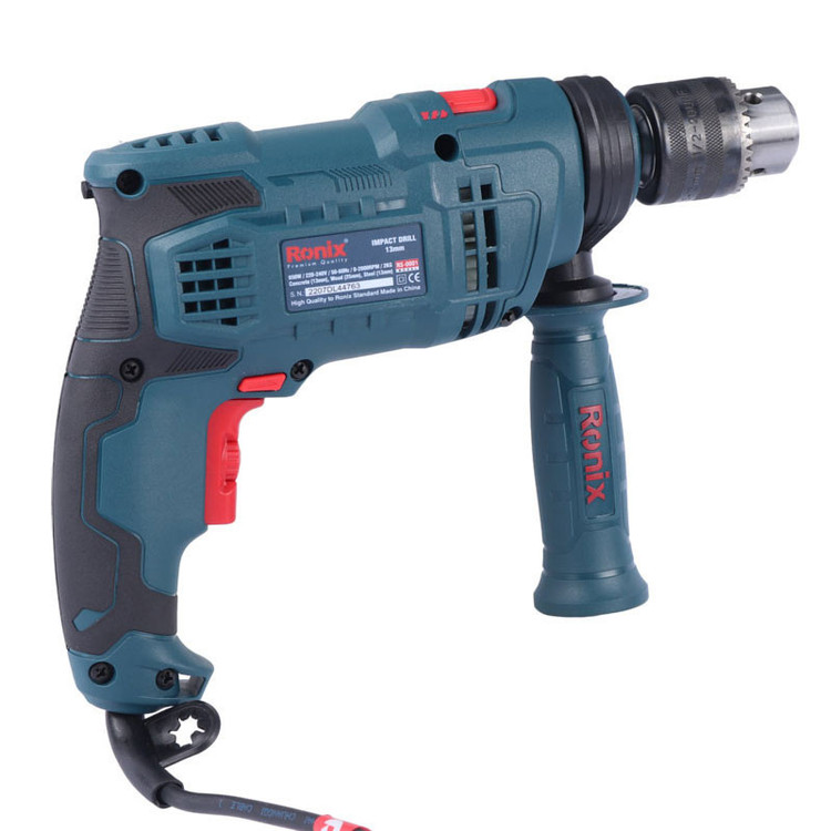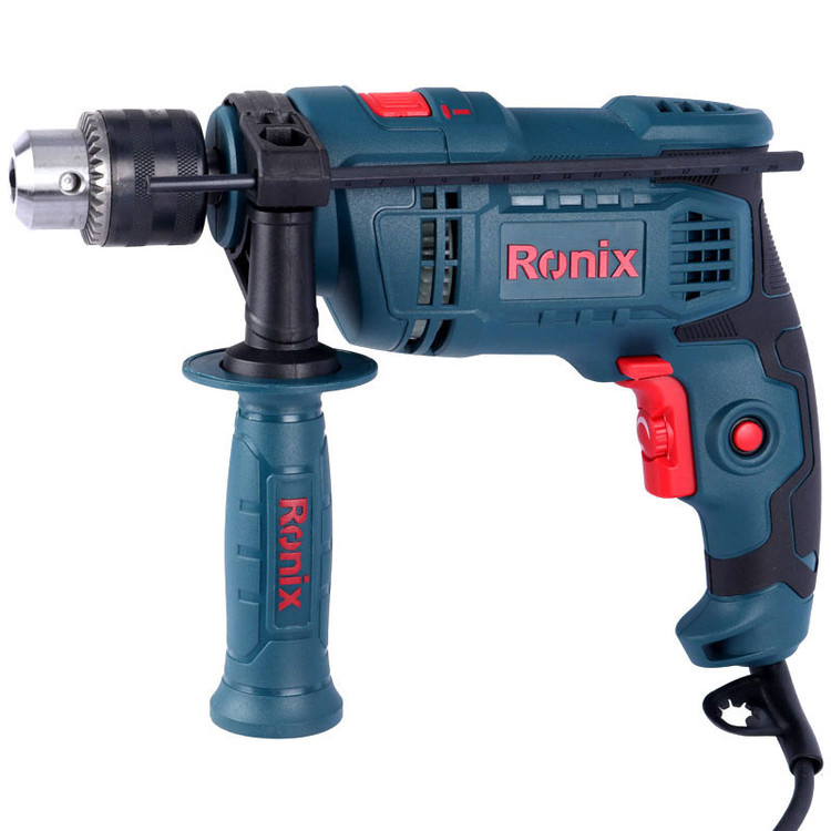 دریل چکشی RS-0001 رونیکس شامل کیت کاملی از انواع مختلف ابزارهای دستی به علاوه سری مته های رونیکس با سایز متفاوت است که در داخل کیف ضد ضربه BMC بسته بندی شده است. این دریل مجهز به موتور 650 واتی بسیار مقاوم برای بهترین کارایی در سوراخ کاری و دریل کاری چکشی می باشد که می تواند سرعتی بالغ بر 2800 دور در دقیقه ایجاد کند. سه نظام این دریل از نوع آچاری تمام فلزی و به ظرفیت 13 میلی متر است که برای تعویض نیازمند آچار مخصوص می باشد. از دیگر ویژگی های کیت دریل چکشی 13 میلی متری رونیکس می توان به برخورداری از دیمر کنترل سرعت و کلید چپ گرد و راستگرد اشاره کرد که امکان باز و بسته کردن پیچ را فراهم می کند. در ضمن مدل RS-0001 رونیکس از وزن سبک و طراحی ارگونومیک برخوردار است و گزینه ای مناسب برای سوراخ کاری سطوح مختلف چوب، فلز و بتن می باشد.