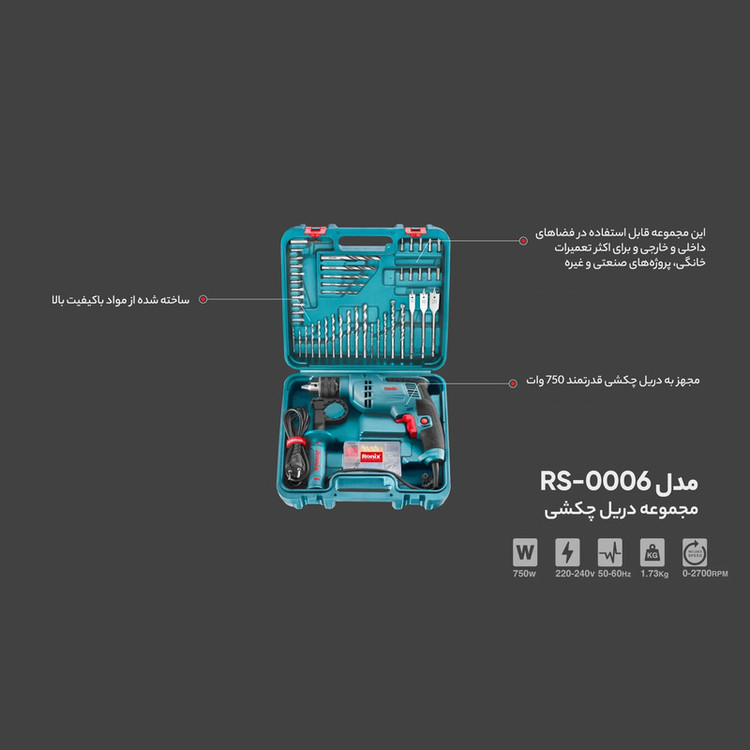 مجموعه 52 عددی دریل چکشی رونیکس مدل RS-0006